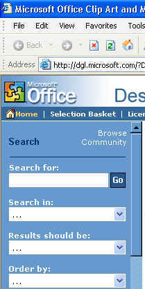 When the clipart window opens, look for the words "Clips Online." Left click that option and wait for the Microsoft site to open. You will see a few boxes on the left. They want you to type in the information.