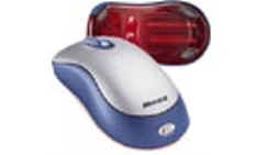 A computer mouse may not have two parts if you are working on a Mac computer. The mouse on the right has one part, and it is also portable. It is not connected directly to the machine through a cord. It works sort of like a portable phone.