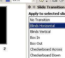 SHOW->SLIDE TRANSITION.