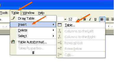 Open Word. The click on TABLE -> INSERT ->TABLE on the toolbar. |