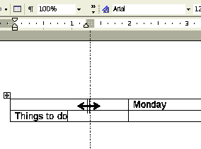 Now we will manually change the width of the columns. Rest the cursor on the line you want to move. When a two-pointed arrow appears, drag the line in toward the left to make narrow the column. |